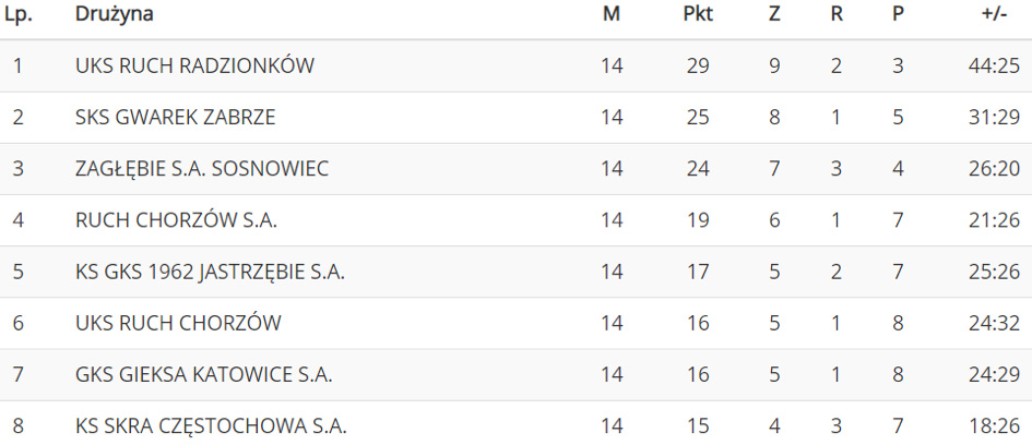 GKS Jastrzębie: Jakub Chudecki - Kamil Bednorz, Michał Kiełbasa, Wiktor Szyszko, Mateusz Jany, Miłosz Misala, Kacper Matras, Kamil Osiak, Kamil Myśliwiec, Szymon Nicpoń, Bartosz Zborowski oraz Miłosz Śnieżek, Jakub Bednarek, Kacper Drobot, Dawid Karbowniczyn, Maciej Norek, Oskar Kołodziej, Dawid Kania.