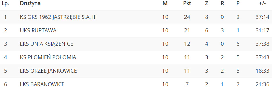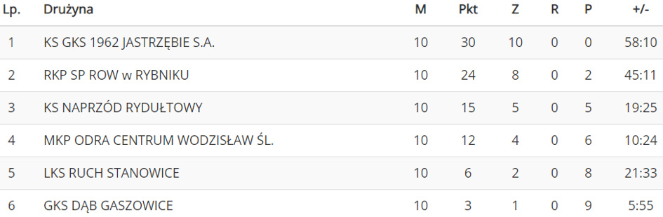 GKS Jastrzębie: Kacper Zapała - Aron Kłosok, Oskar Gancarz, Mateusz Brzyszkowski, Oskar Drzyzga, Maciej Kaczmarczyk, Kacper Wojnar, Oliwier Polak, Paweł Rutkowski, Kamil Kwiatkowski, Alan Adekoya oraz Olivier Misztal, Cyryl Markowski, Kamil Brunowski, Łukasz Dubilis, Aleksander Klimczyk, Robert Miłkowski, Szymon Halfar.