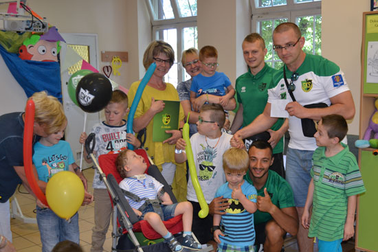 Wraz z przedstawicielami kibiców i piłkarzami - Damianem Trontem i Faridem Alim, wzięliśmy udział w przedstawieniu o cyrku. Dzieci otrzymały od nas klubowe kolorowanki i całe mnóstwo zielono-czarnych-zółtych balonów. Kibice przekazali także pieniądze zebrane podczas licytacji koszulki Łukasza Fabiańskiego.