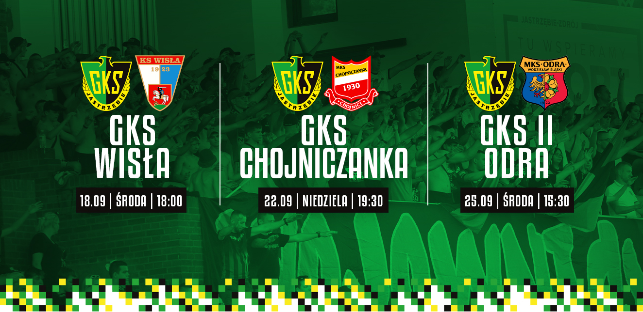 Trwa sprzedaż biletów na mecze ligowe GKS-u Jastrzębie przy Harcerskiej z Wisłą Puławy (18 września, godz. 18:00) oraz Chojniczanką Chojnice (22 września, godz. 19:30). Jednocześnie rozpoczęła się sprzedaż biletów na mecz GKS II Jastrzębie – Odra Wodzisław (25 września, godz. 15:30) w rozgrywkach Pucharu Polski podokręgu Rybnik, który również zostanie rozegrany na Stadionie Miejskim.