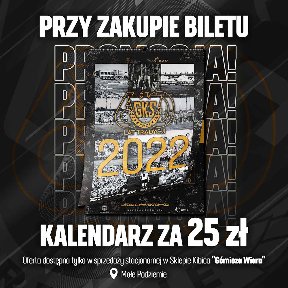 Na to spotkanie przygotowaliśmy także dla wszystkich kibiców PROMOCJĘ! Przy zakupie każdego biletu, cena klubowego kalendarza na 2022 rok wyniesie jedynie 25 zł! Oferta dotyczy tylko i wyłącznie biletów zakupionych stacjonarnie w klubowym Sklepie Kibica.