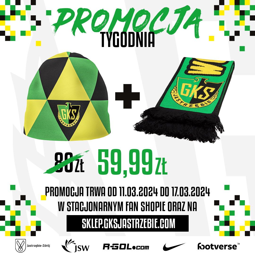 Począwszy od poniedziałku, 11 marca, w naszym oficjalnym Fan Shopie - zarówno stacjonarnym, jak i online - ruszają promocje tygodnia! Debiutujemy zestawem czapka+szalik, który można kupić w niezwykle atrakcyjnej cenie - 59,99! Warto zwrócić uwagę, że osobno oba produkty kosztują 80 zł! Promocja pierwszego zestawu trwa do 17 marca.