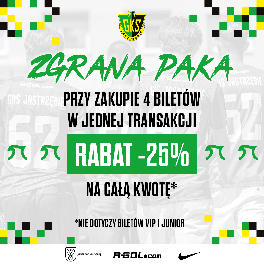 Bilety na mecz z Podbeskiedziem można kupować zarówno stacjonarnie, jak i internetowo. Sprzedaż stacjonarna trwa w naszym oficjalnym Fanshopie, zlokalizowanym w Galerii Zdrój przy ulicy Podhalańskiej 26 (na ,,wyspie'' naprzeciwko sklepu Carrefour), a internetowa poprzez stronę bilety.gksjastrzebie.com.