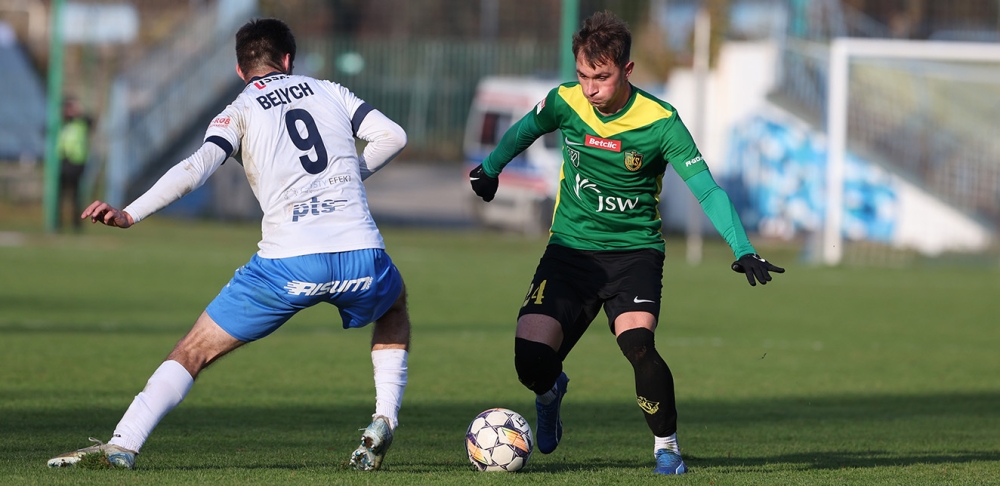 Konferencja prasowa po meczu 18. kolejki Betclic 2 Ligi Hutnik Kraków - GKS Jastrzębie, podczas której spotkanie skomentowali trenerzy obu zespołów - Patryk Szymik i Mateusz Wrana (GKS) oraz Maciej Musiał (Hutnik).