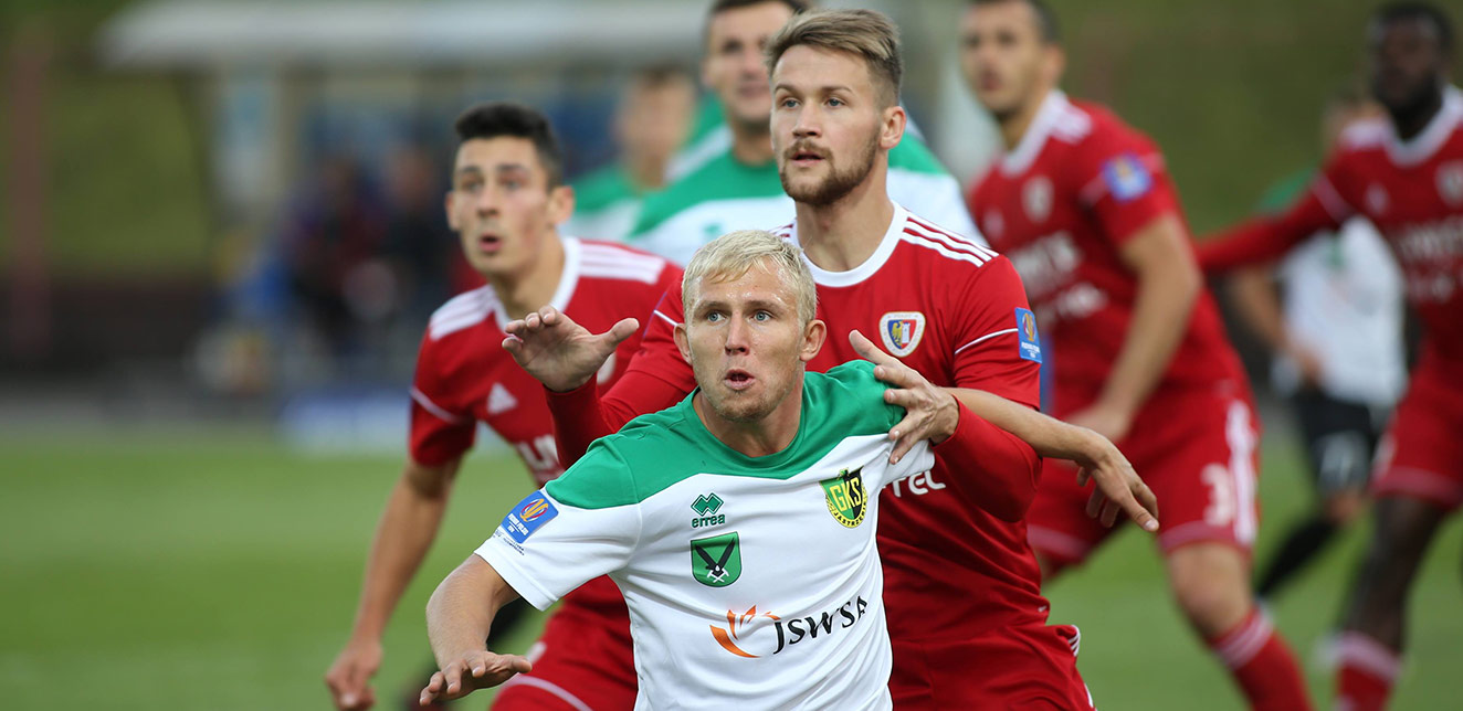 GKS Jastrzębie: Grzegorz Drazik - Dominik Kulawiak, Piotr Pacholski, Kamil Szymura, Dawid Gojny, Farid Ali (81. Dominik Szczęch), Bartosz Jaroszek (72. Kamil Adamek), Damian Tront, Patryk Skórecki, Kamil Jadach (k) (64. Dawid Weis), Łukasz Krakowczyk.