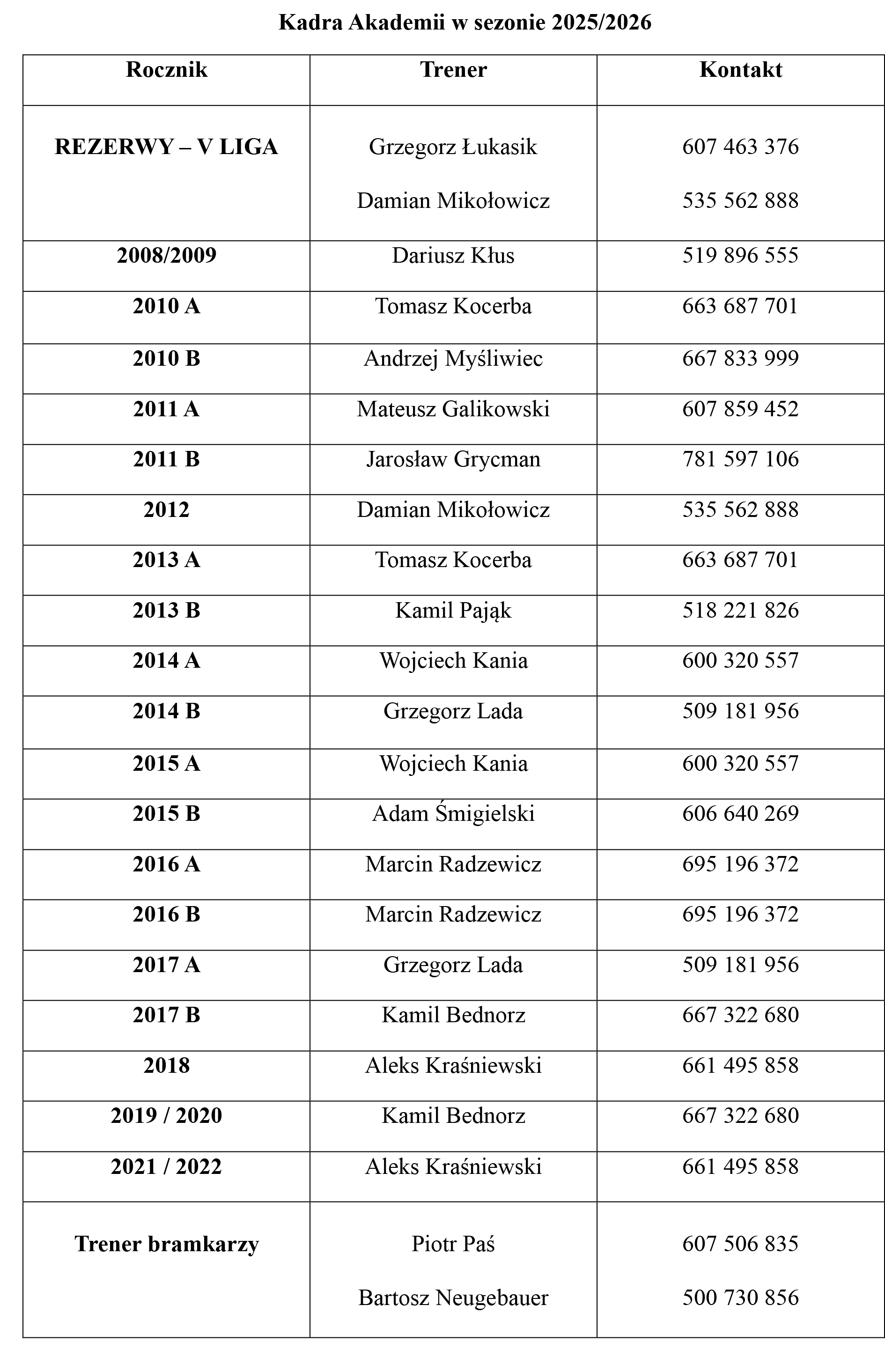 Kadra Akademii GKS Jastrzębie